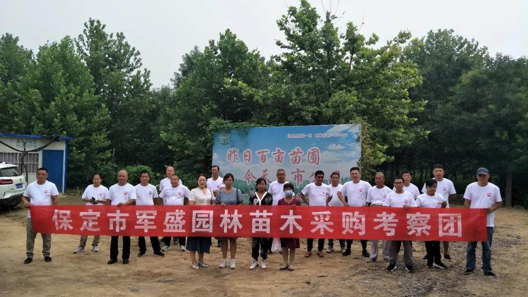 2020.7.15保定市軍盛園林組成的苗木采購考察團一行20余人,來到一森園林苗木基地,考察了老白蠟、國槐、法桐、金葉榆、丁香、楸樹、椿樹等。大家對一森園林的標準化苗木基地高質量管理一致稱贊,隨即與一森園林簽訂苗木購銷協議,售出大量一級品國槐、老白蠟等。